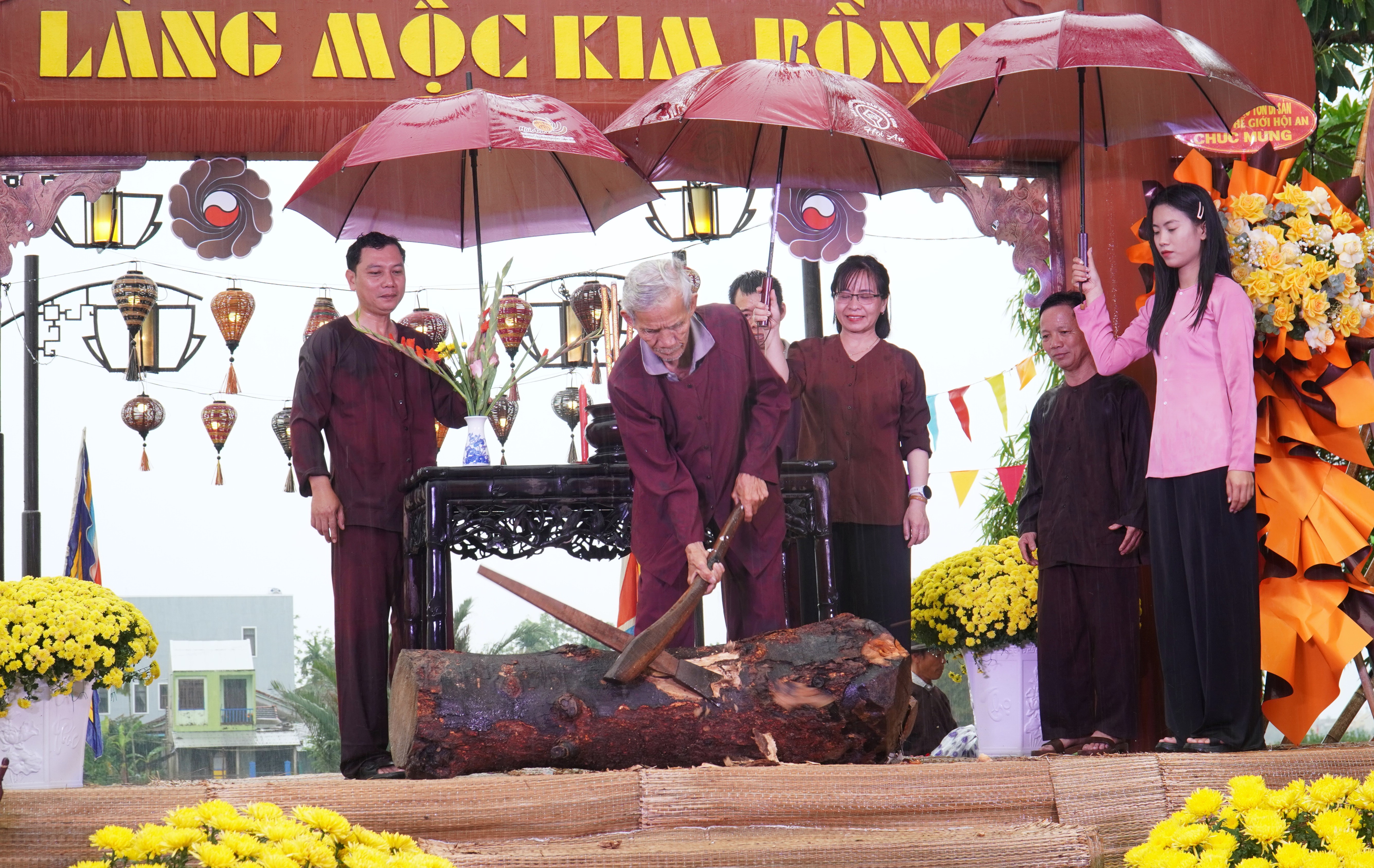 Tái hiện nghi thức xẻ gỗ bằng cưa líu truyền thống của làng Kim Bồng.