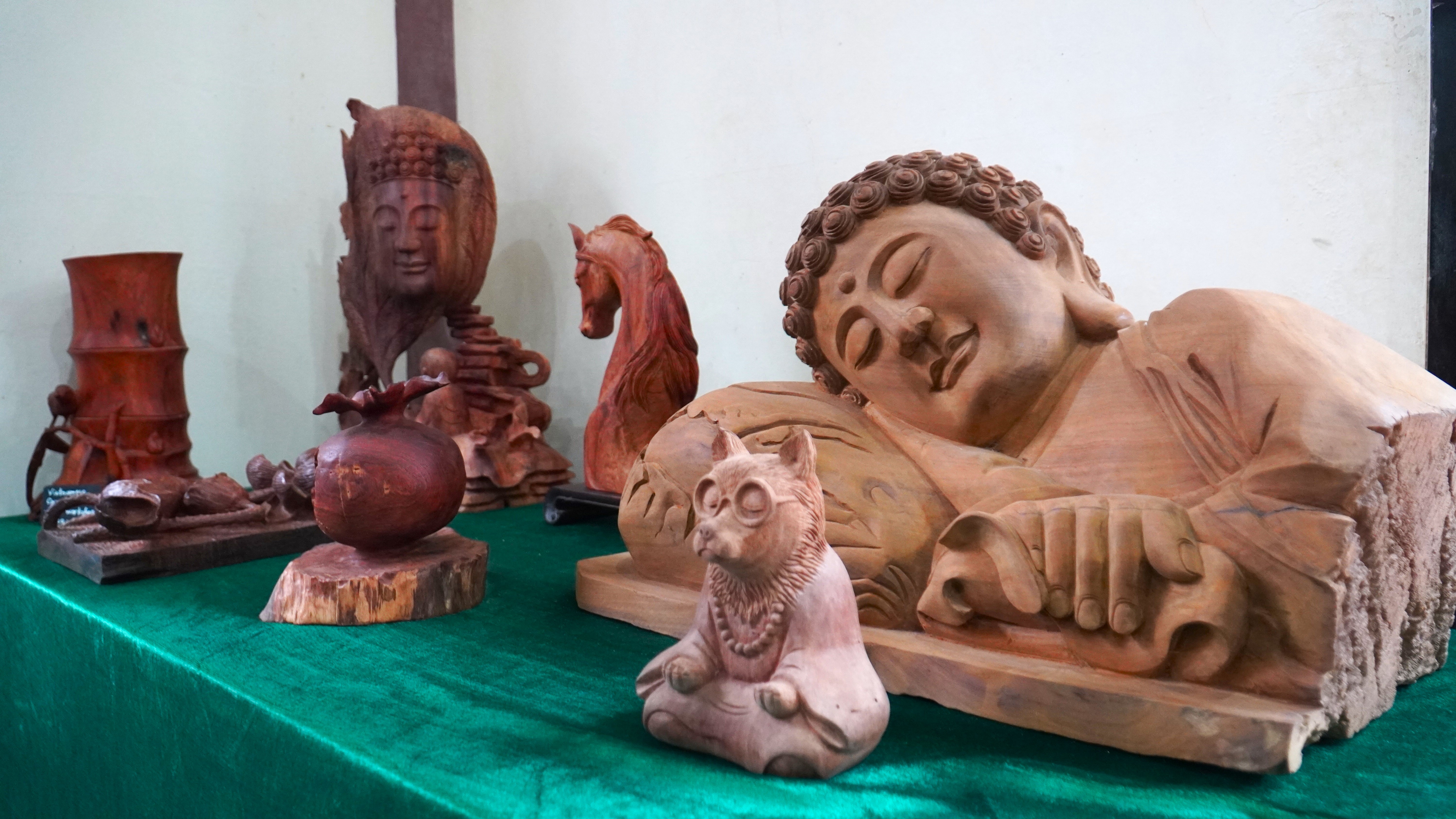 Trưng bày các sản phẩm thủ công mỹ nghệ.