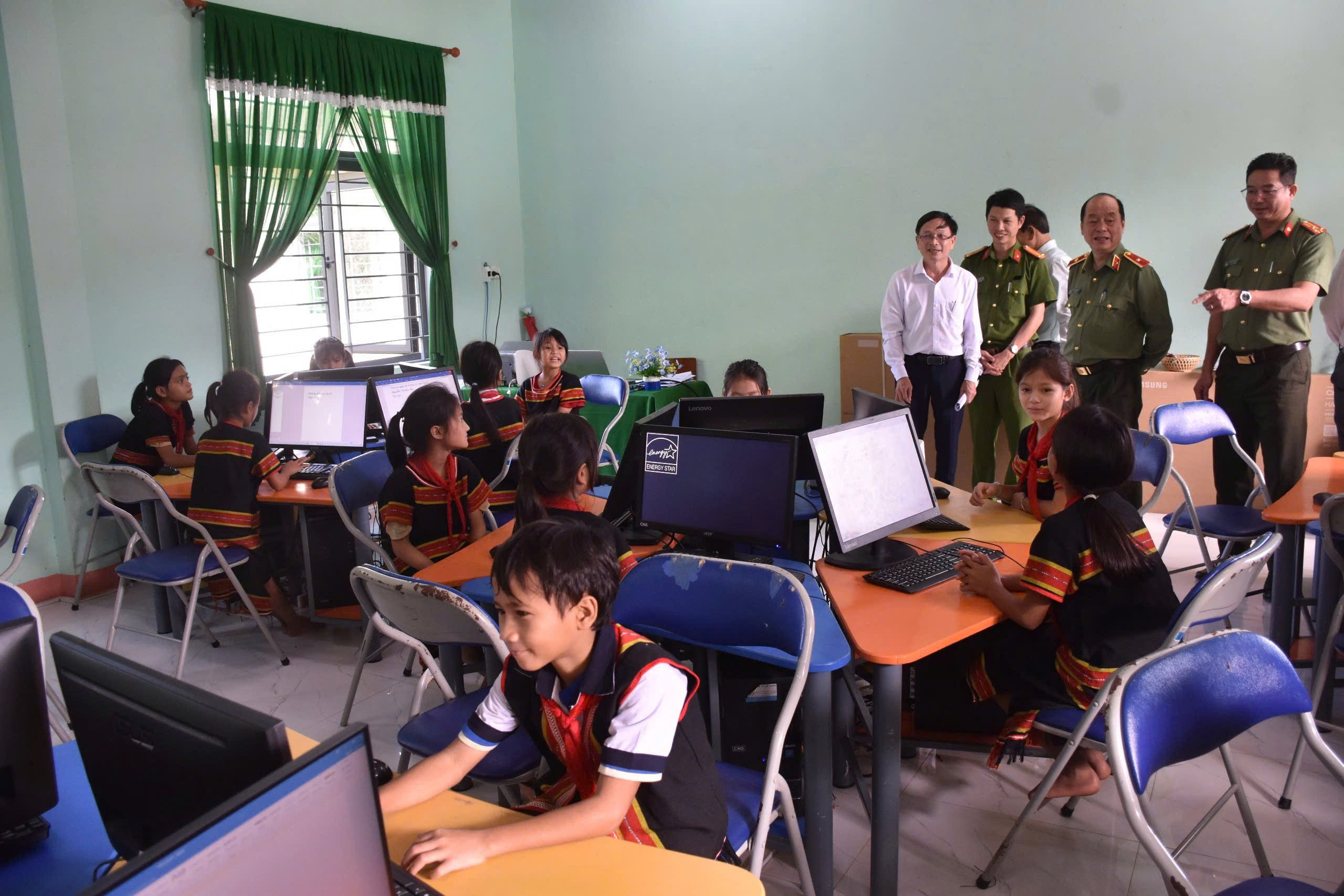 Tại xã Trà Tập, lực lượng Công an xã chủ động mang dịch vụ hành chính công đến tận thôn, nóc. Kiên trì “đi từng ngõ, gõ từng nhà”, Công an xã hướng dẫn bà con tiếp cận dịch vụ công trực tuyến, tuyên truyền pháp luật tại Nhà Rông.
