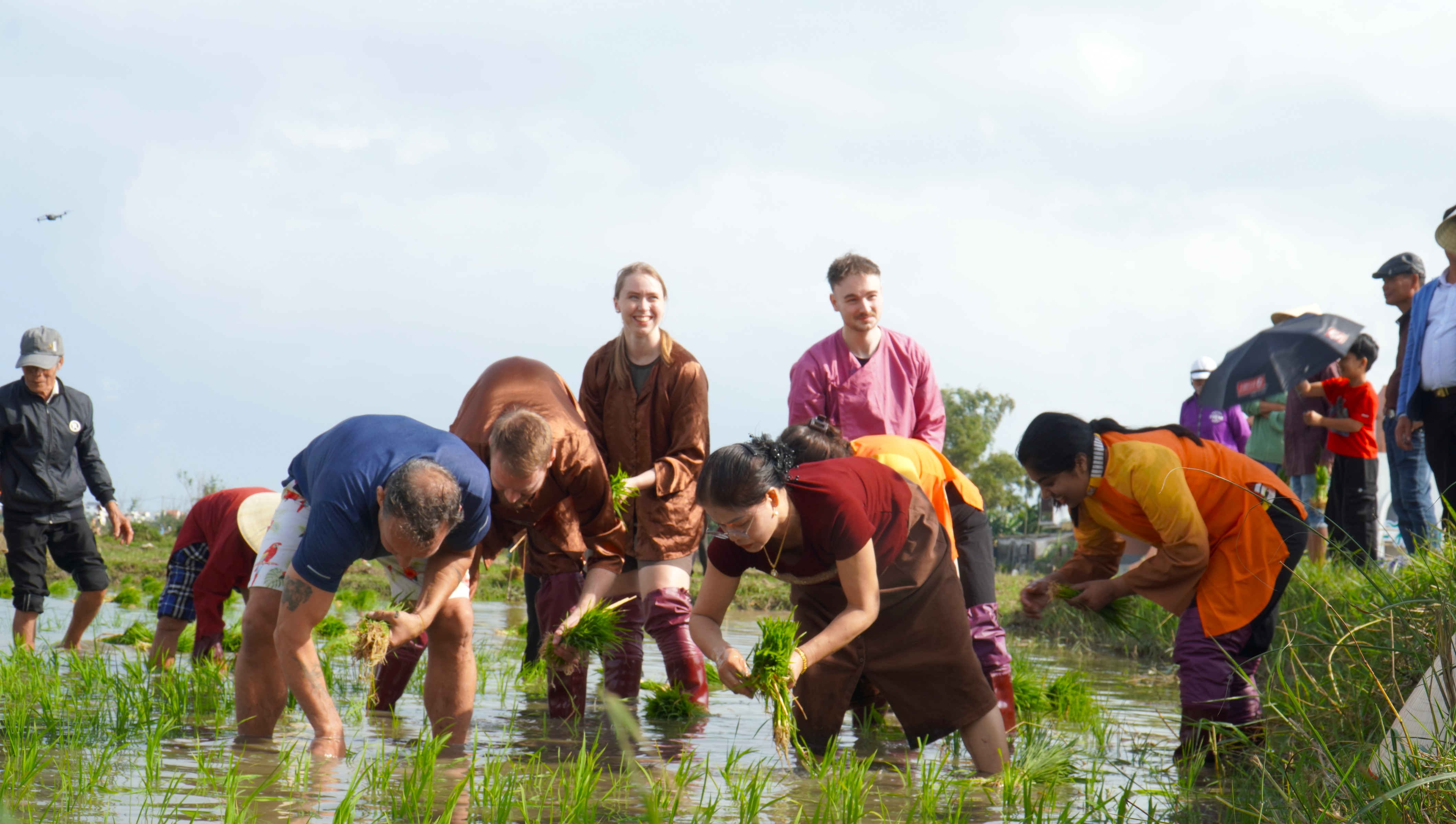 Xắn quần lội ruộng cấy lúa cùng người dân, chị Lizzie (Vương quốc Anh) chia sẻ, trực tiếp làm nhà nông là một trải nghiệm rất tuyệt vời. “Tôi cảm nhận rõ tinh thần đoàn kết, thân thiện của người dân nơi đây”, chị Lizzie nói.