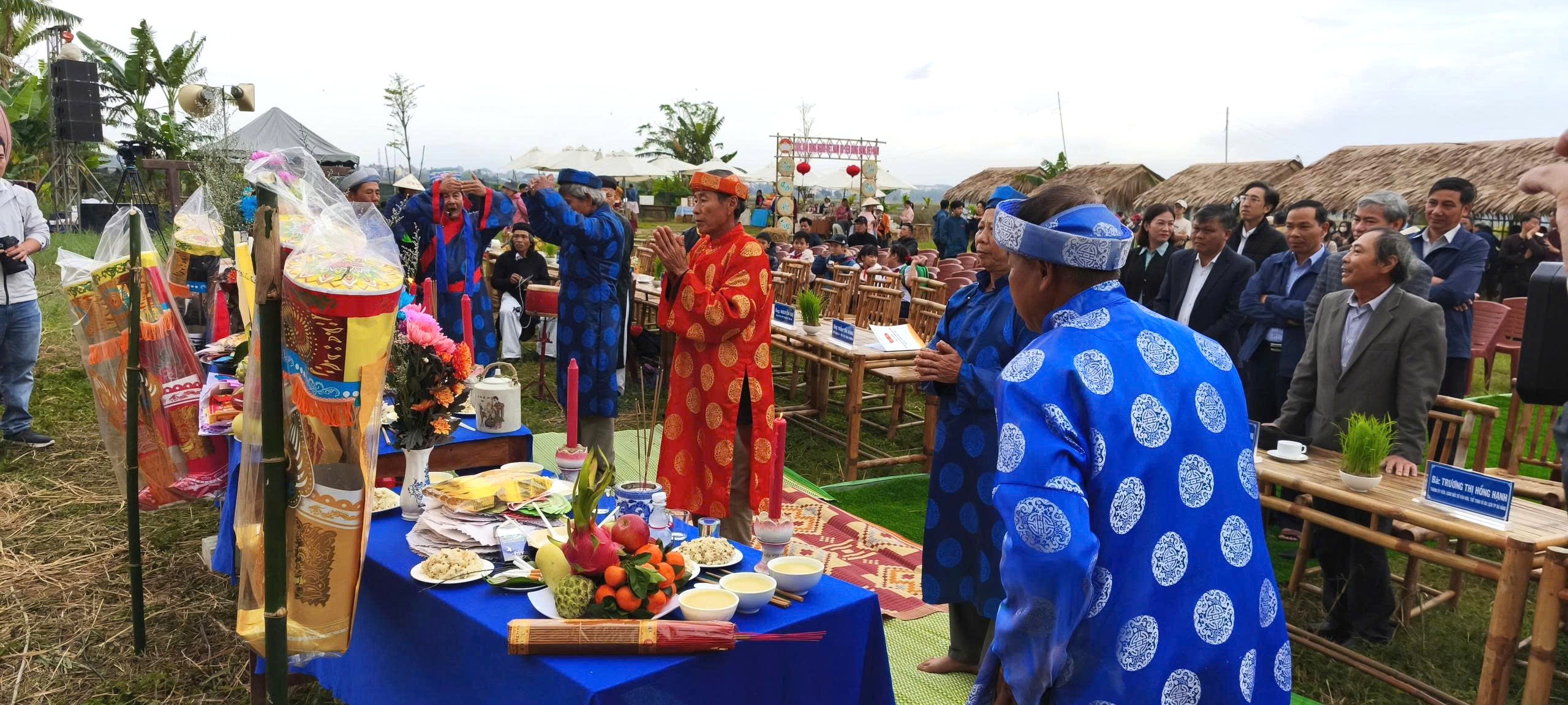 Từ 6 giờ 30 sáng, các bậc cao niên trong làng thực hiện lễ cúng Thần Nông, Thần Hoàng, tạ ơn trời đất, cầu mong mưa thuận gió hòa, mùa màng bội thu. Không gian lễ cúng diễn ra nghiêm trang, thành kính, mở đầu cho ngày hội xuống đồng của bà con nông dân Hội An Đông.