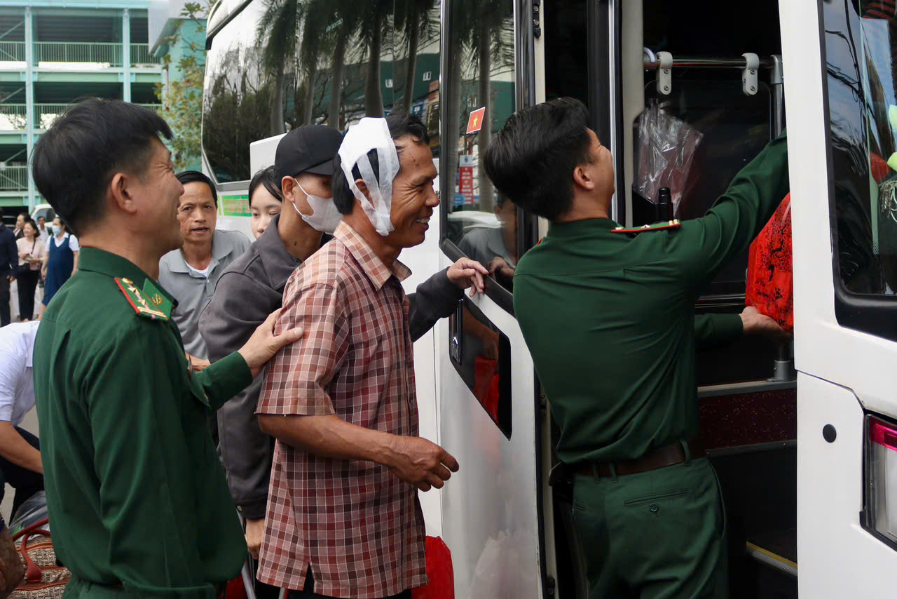 Cán bộ, chiến sĩ đồng hành, hỗ trợ bệnh nhân trước giờ xe lăn bánh