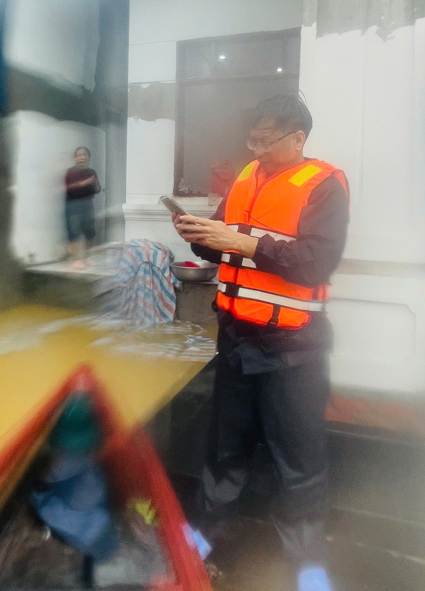 Chủ tịch UBND xã Thu Bồn Nguyễn Thanh Sơn xuống khu ngập lụt chỉ đạo công tác ứng cứu nhân dân.