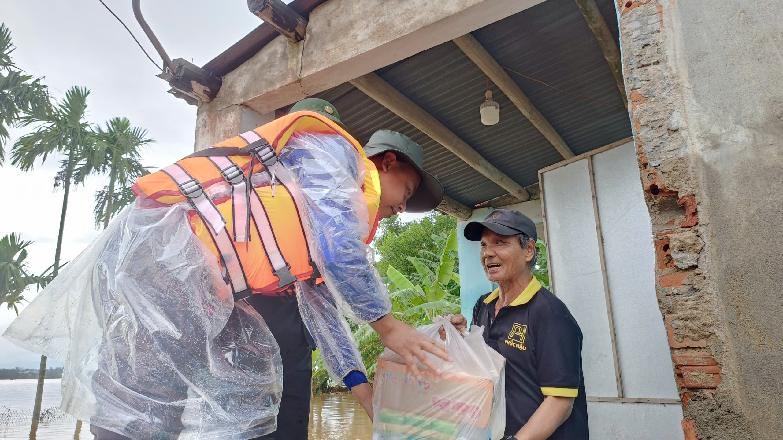 Chiều 30-10, Phó Chủ tịch Thường trực HĐND thành phố Trần Phước Sơn đến thăm, động viên bà con vùng lũ tại xã Đại Lộc. Đi cùng đoàn có Đại tá Hoàng Văn Mẫn, Chính ủy Ban chỉ huy Bộ đội Biên phòng thành phố Đà Nẵng.