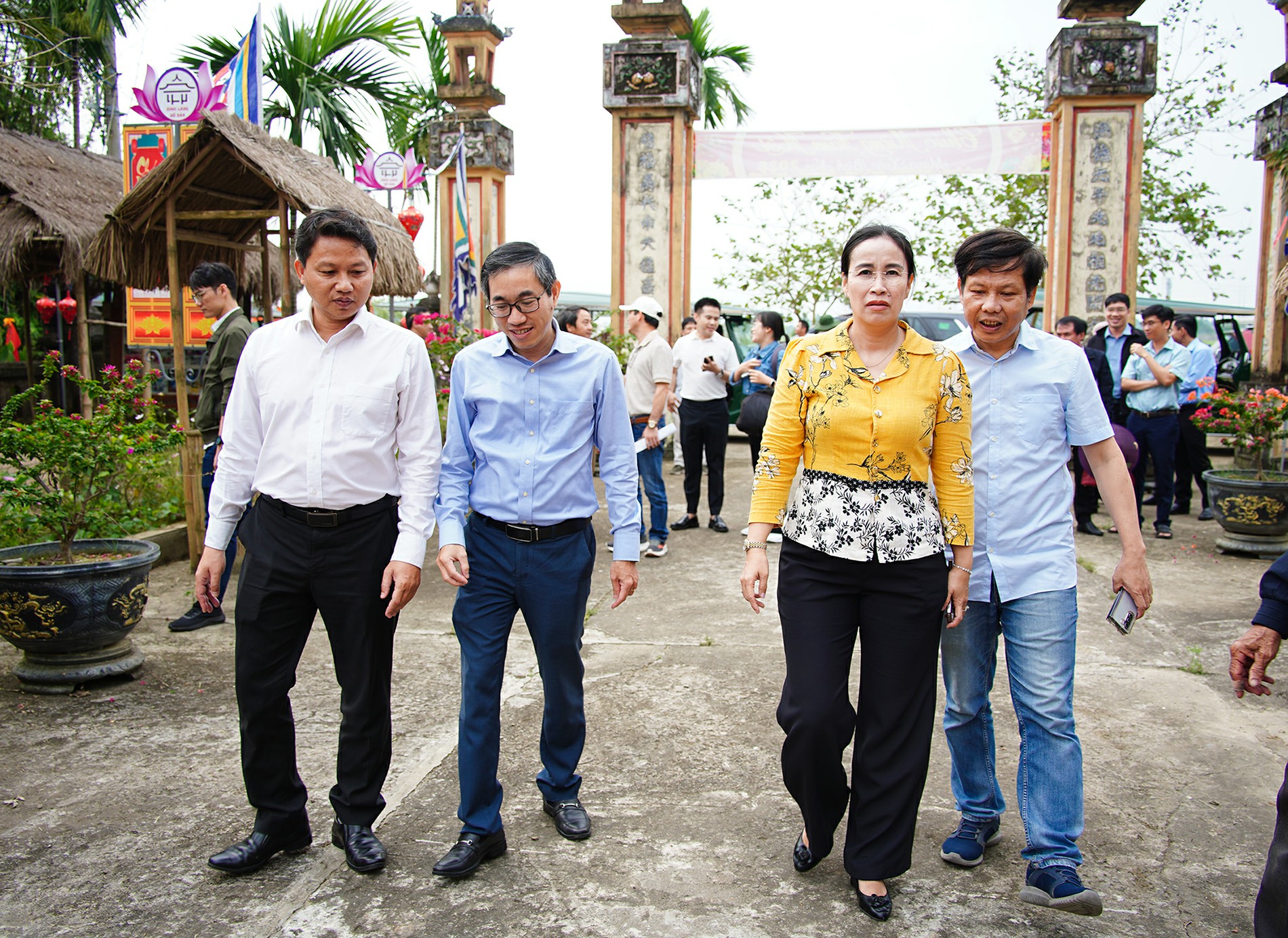 Phó Chủ tịch UBND thành phố Nguyễn Thị Anh Thi tham quan đình làng Bồ Bản