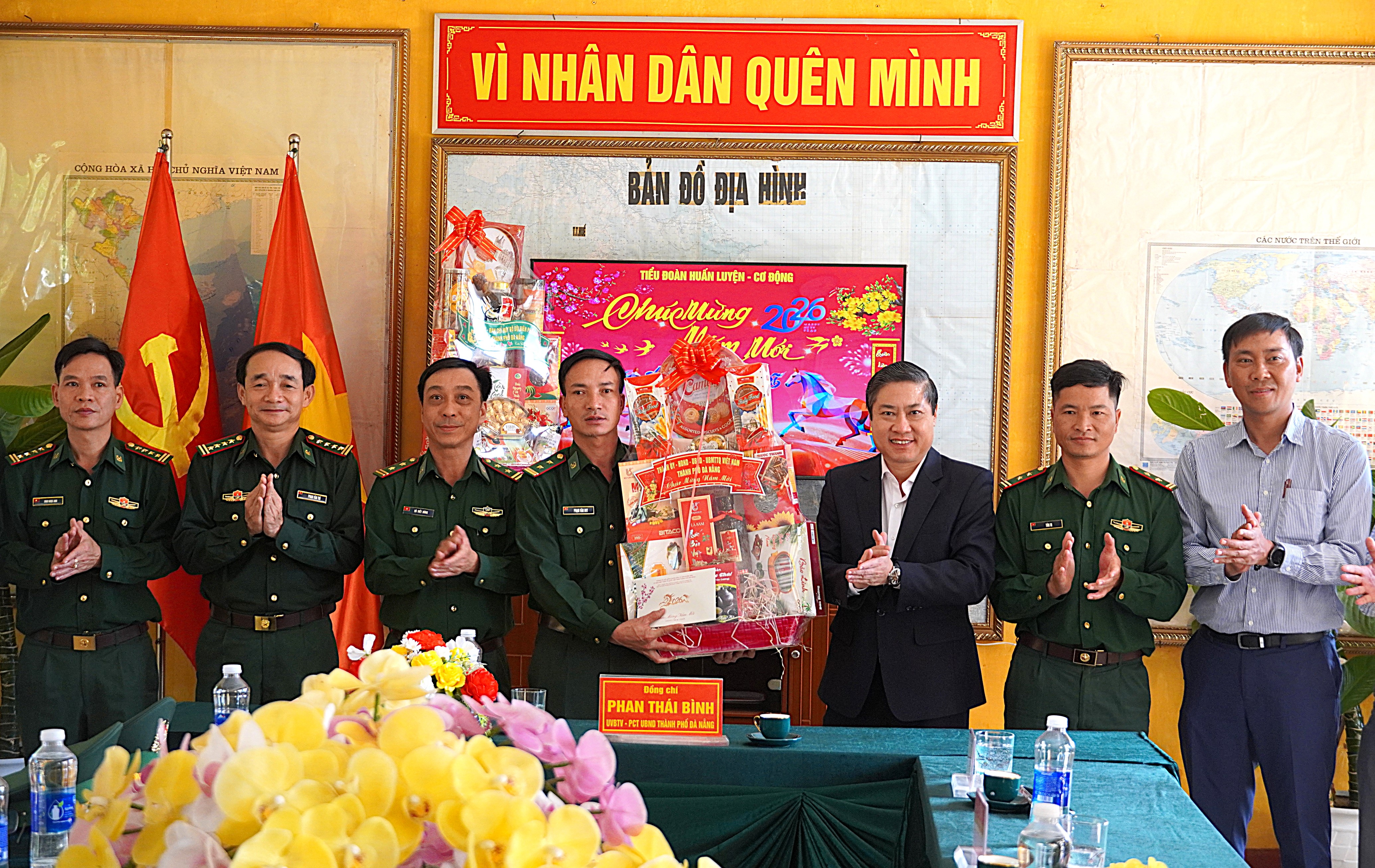 Cũng trong sáng 05-02, Phó Chủ tịch UBND thành phố Phan Thái Bình đến thăm hỏi, tặng quà và chúc Tết cán bộ, chiến sĩ Tiểu đoàn Huấn luyện cơ động – Bộ Chỉ huy Quân sự thành phố.