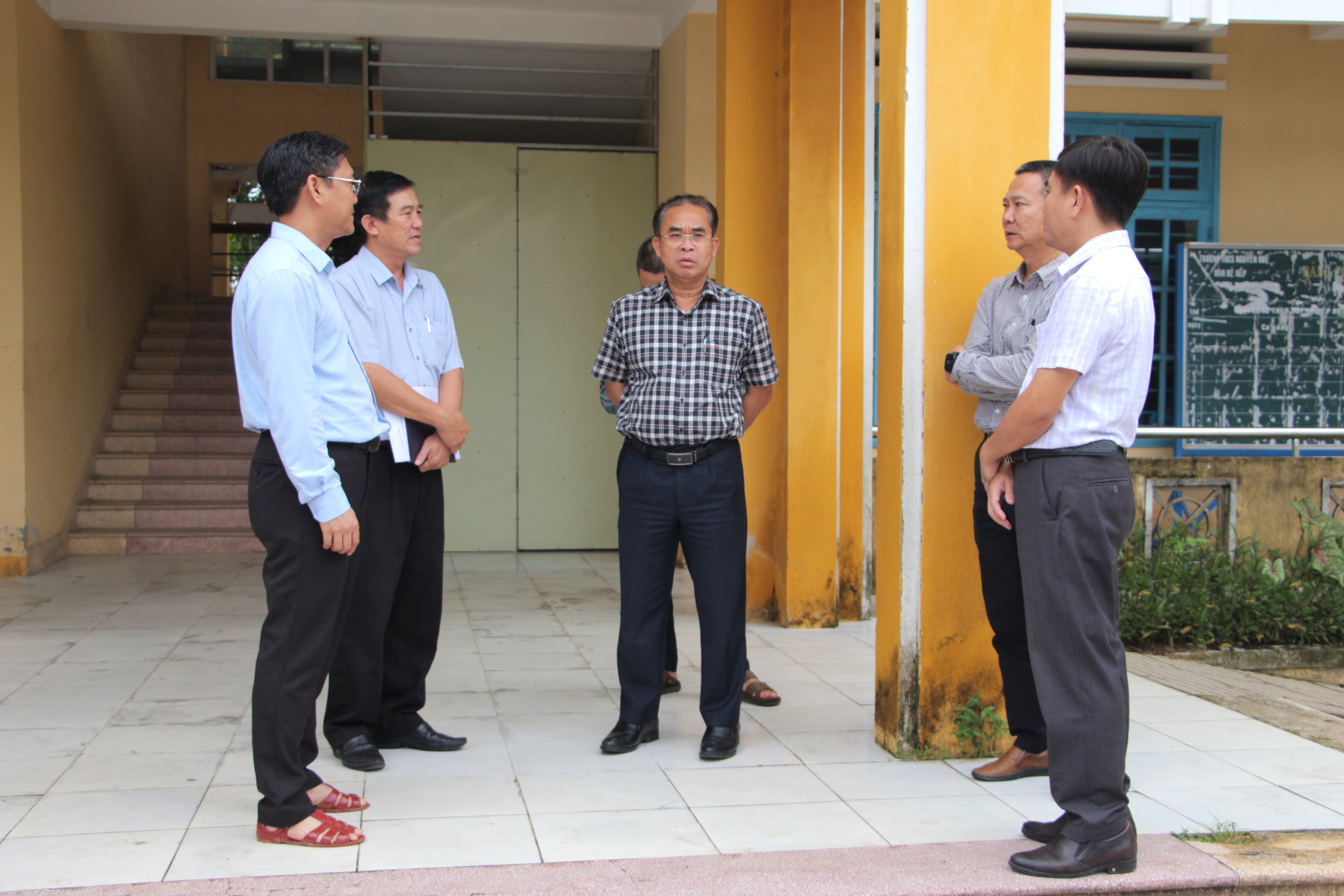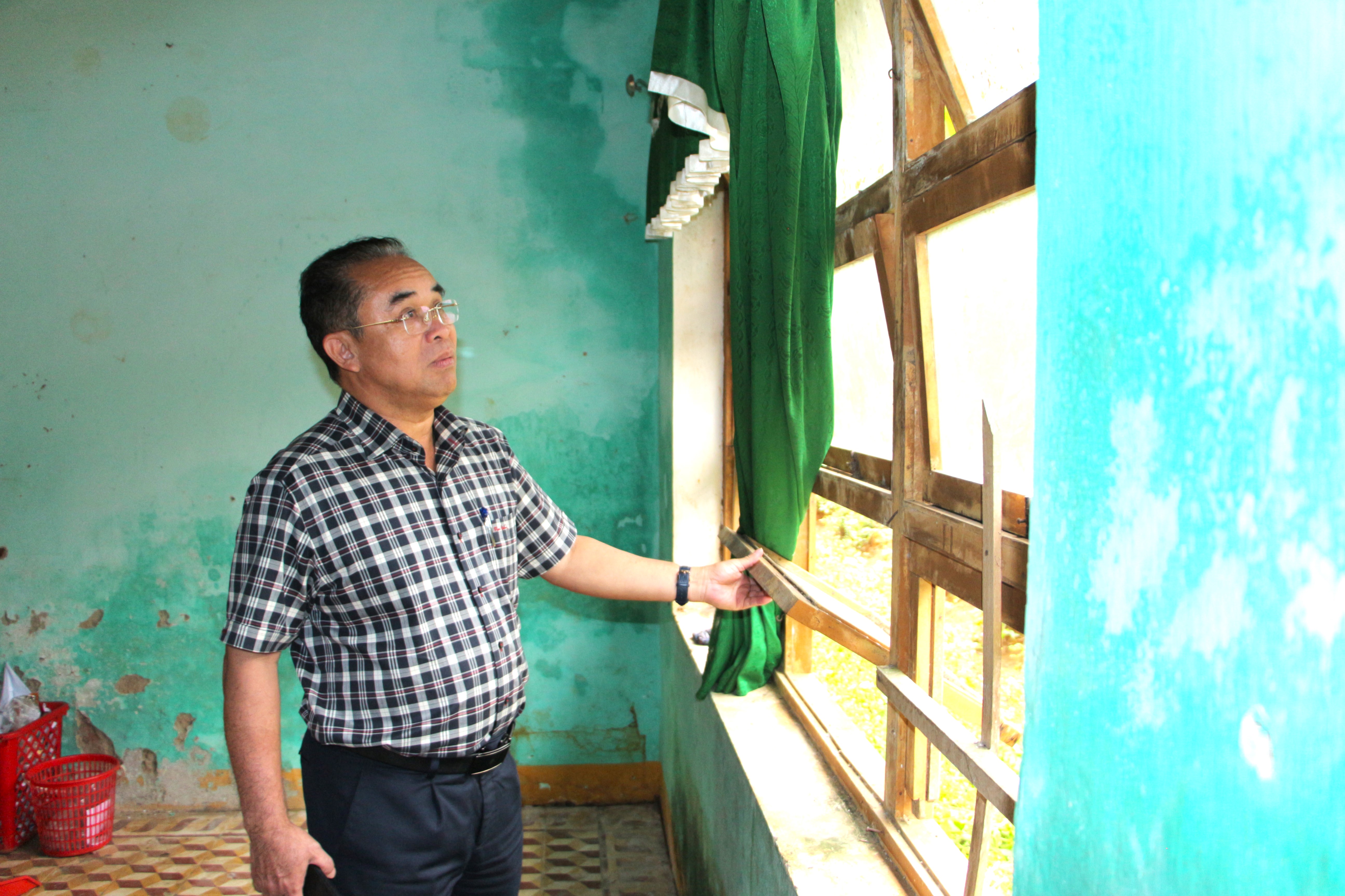 Nghe lãnh đạo xã Thăng Phú báo cáo hiện trạng trường, lớp học và đề xuất sửa chữa, nâng cấp.