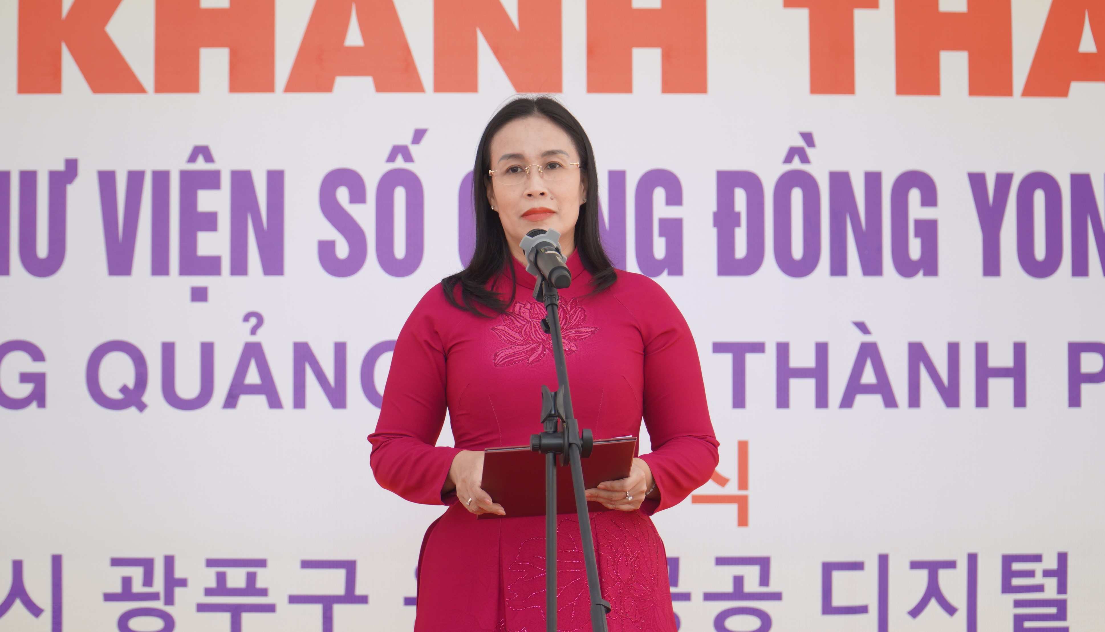 Phát biểu tại buổi lễ, Phó Chủ tịch UBND thành phố Nguyễn Thị Anh Thi nhấn mạnh: Trong bối cảnh chuyển đổi số đang diễn ra mạnh mẽ, thư viện không chỉ là nơi lưu giữ sách, mà ngày càng trở thành trung tâm tri thức, trung tâm kết nối học tập và lan tỏa văn hóa đọc trong cộng đồng. Thư viện số cộng đồng Yongin được kỳ vọng sẽ góp phần khơi dậy niềm đam mê đọc sách trong học sinh, hình thành kỹ năng tự học, tư duy độc lập và khả năng tiếp cận tri thức số. Tạo điều kiện để người dân ở mọi lứa tuổi dễ dàng tiếp cận thông tin, kiến thức, công nghệ mới, từ đó nâng cao dân trí và chất lượng cuộc sống. Trở thành điểm sinh hoạt văn hóa – giáo dục bổ ích, nơi gắn kết gia đình, nhà trường và xã hội trong việc xây dựng xã hội học tập.
