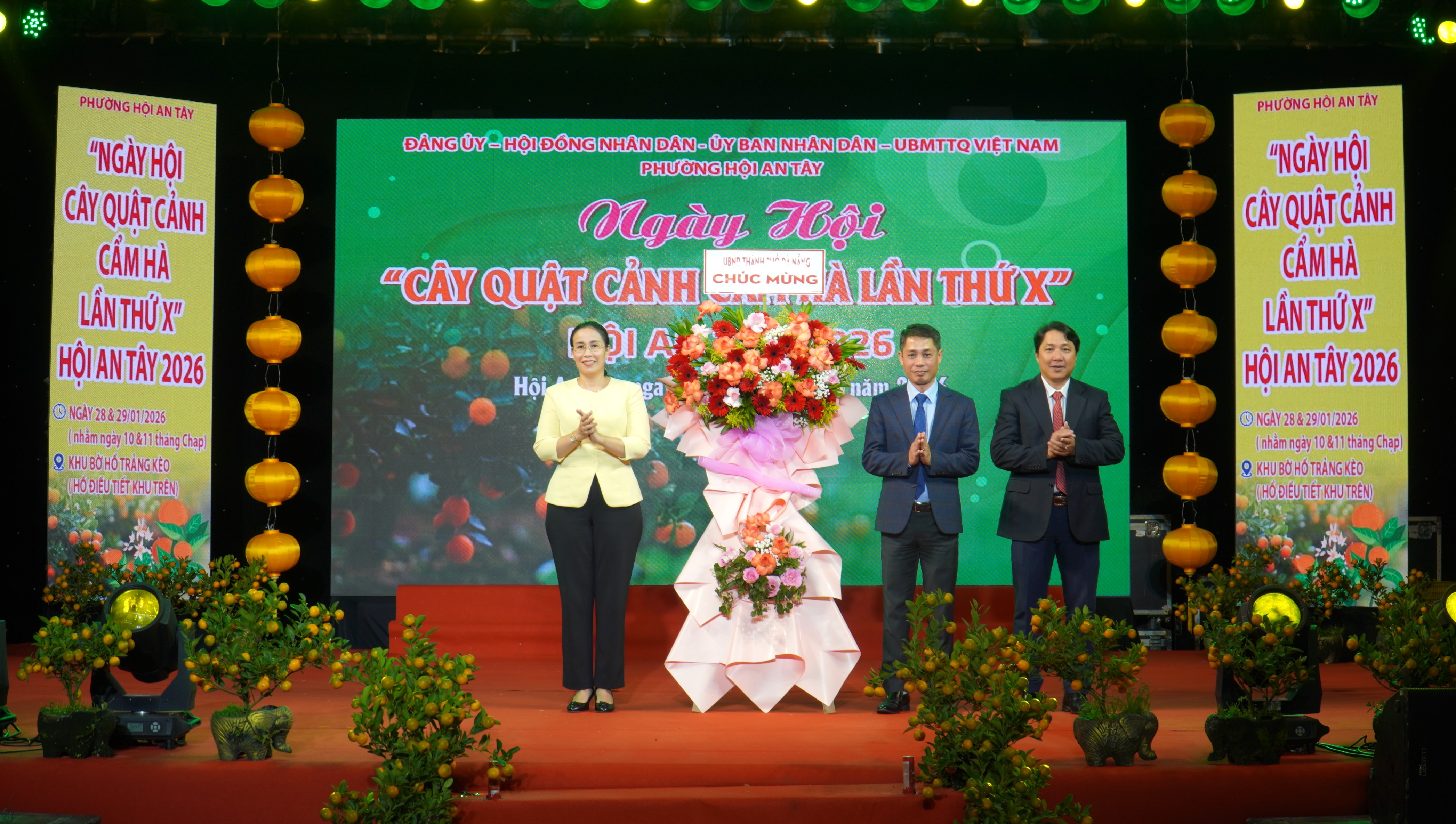 Chiều 28-01 tại khu vực bờ hồ Trảng Kèo, UBND phường Hội An Tây tổ chức “Ngày hội cây quật cảnh Cẩm Hà lần thứ X – năm 2026”. Phó Chủ tịch UBND thành phố Nguyễn Thị Anh Thi đến dự và tặng hoa chúc mừng.