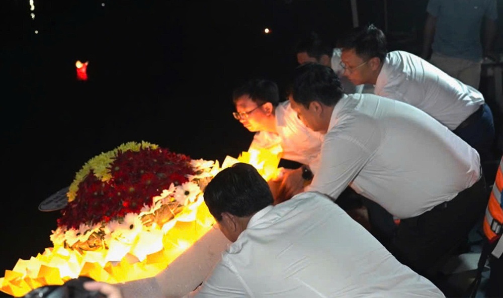 Lãnh đạo Thành phố, phường Hải Vân thả hoa đăng tri ân trên sông Cu Đê