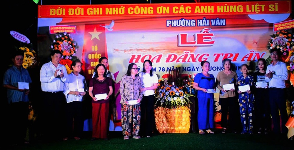 Dịp này, Đảng uỷ, HĐND, UBND, MTTQ VN phường Hải Vân trao tặng 10 suất quà, mỗi suất trị giá 1 triệu đồng cho các thương binh, bệnh binh, thân nhân liệt sĩ, người có công cách mạng trên địa bàn.