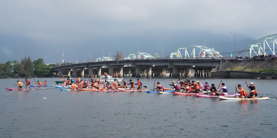 Điểm khác biệt so với mọi năm, là ngoài đua thuyền truyền thống, chương trình năm nay còn diễn ra nhiều hoạt động hấp dẫn như đua kayak, sup, biểu diễn mô tô nước trên sông, tạo không khí sôi động, mới mẻ.