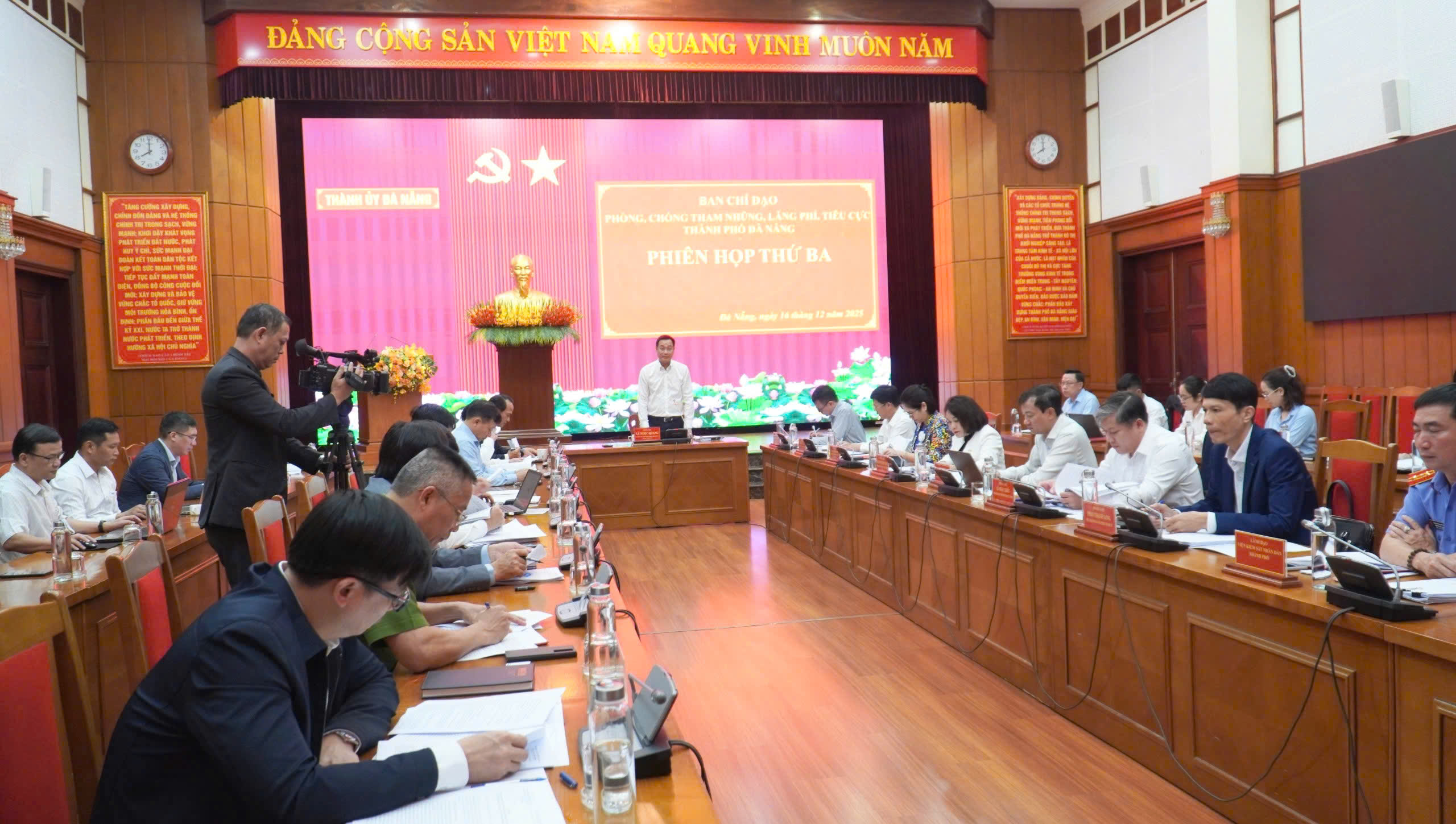 Sáng 16-12, Ban Chỉ đạo về phòng, chống tham nhũng, lãng phí, tiêu cực thành phố (Ban Chỉ đạo) họp phiên thứ 3 thảo luận, cho ý kiến về kết quả hoạt động năm 2025 và chương trình công tác, kiểm tra, giám sát năm 2026. Ủy viên Trung ương Đảng, Bí thư Thành ủy Lê Ngọc Quang, Trưởng Ban chỉ đạo chủ trì phiên họp.