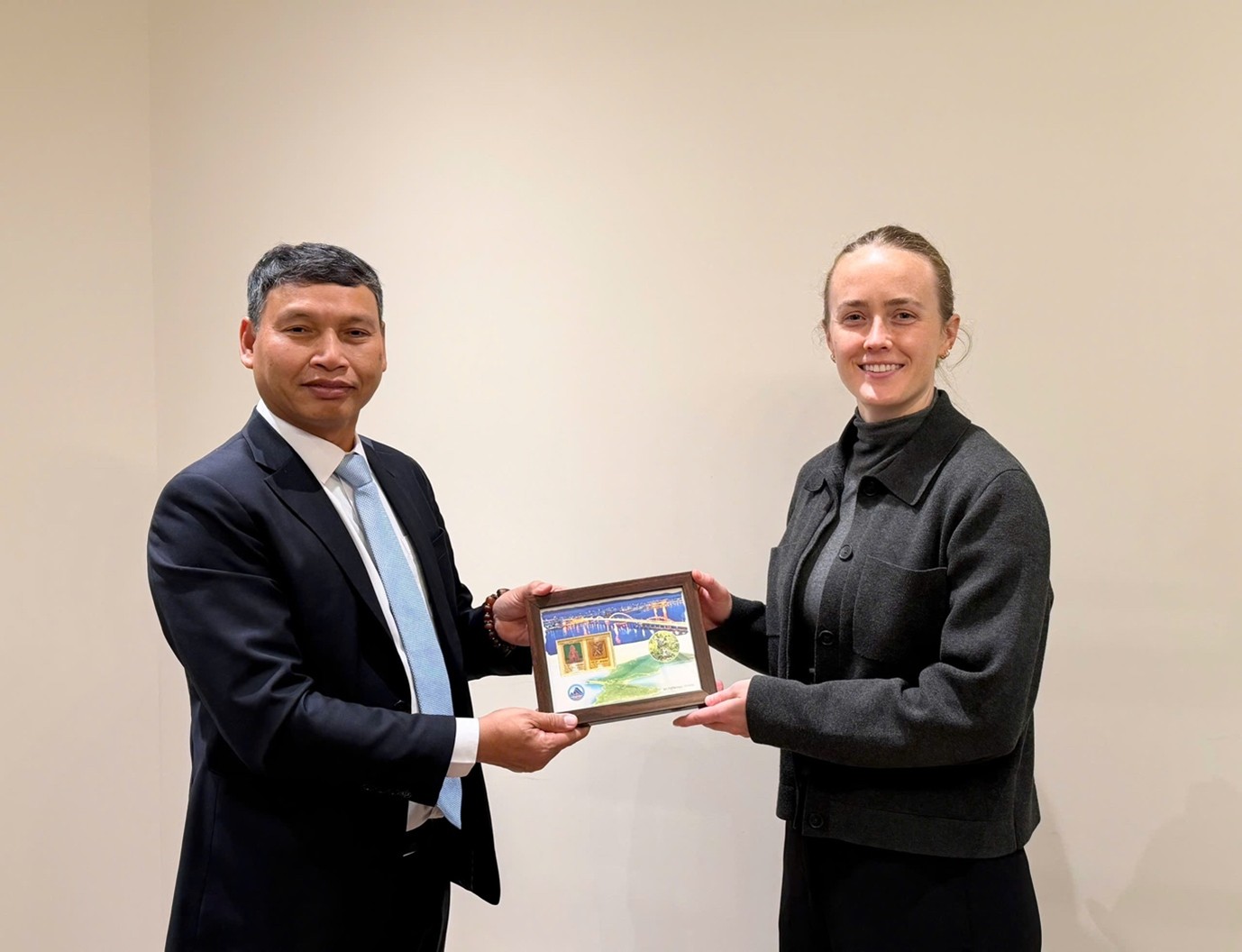 Phó Chủ tịch Thường trực UBND thành phố Hồ Kỳ Minh tặng quà lưu niệm cho đại diện Aligned Climate Capital sau buổi làm việc