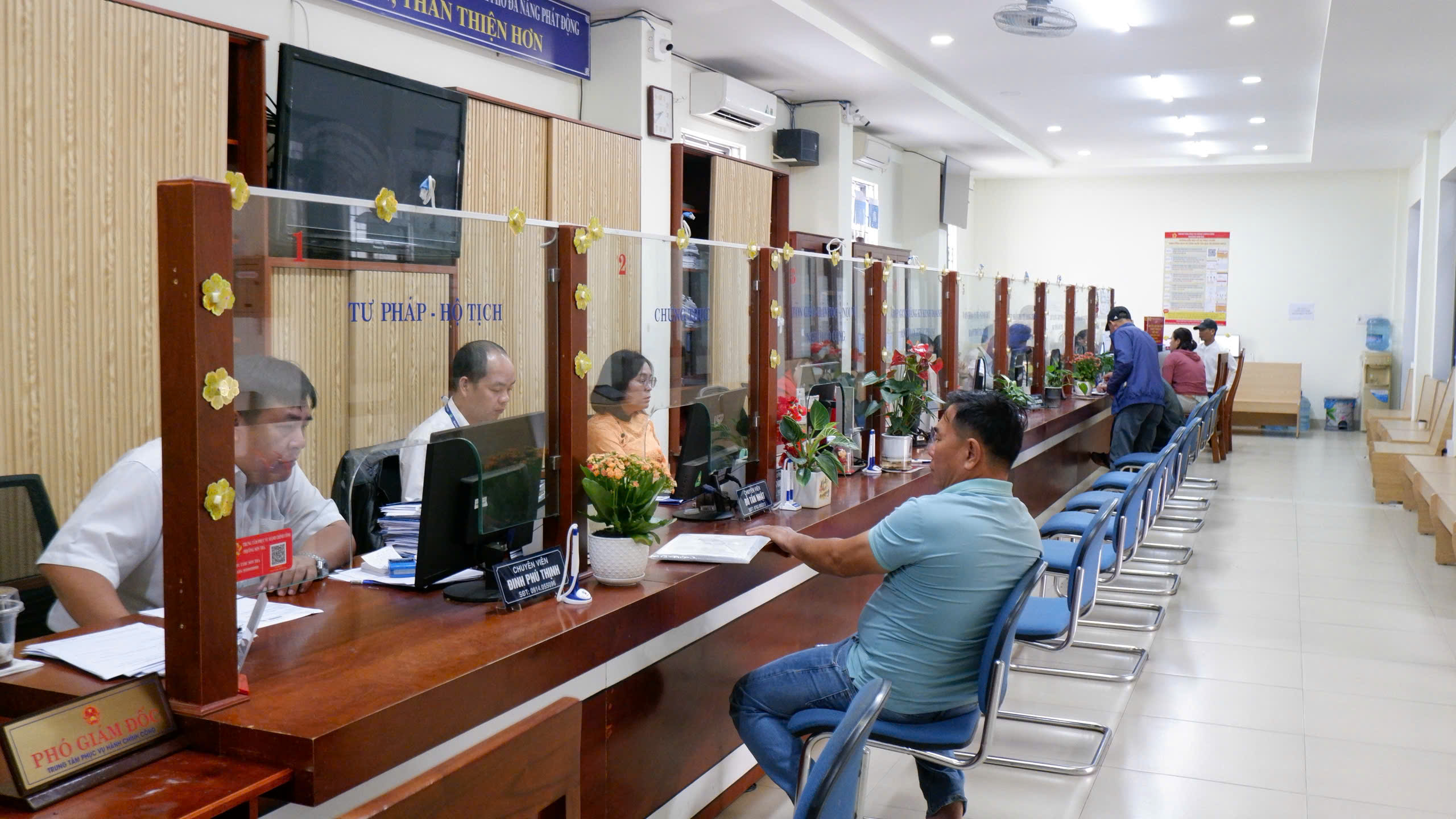 Các quầy tiếp nhận và trả kết quả được bố trí khoa học. Hệ thống lấy số thứ tự vận hành thông suốt, tạo thuận lợi cho người dân đến liên hệ công tác. Hồ sơ thuộc các lĩnh vực hộ tịch, chứng thực, đăng ký kinh doanh, đất đai được tiếp nhận, xử lý đúng quy trình, không để xảy ra tình trạng ùn ứ. Người dân đến làm thủ tục hành chính bày tỏ sự phấn khởi, ghi nhận tinh thần trách nhiệm, tận tình và thái độ phục vụ của đội ngũ công chức phường.