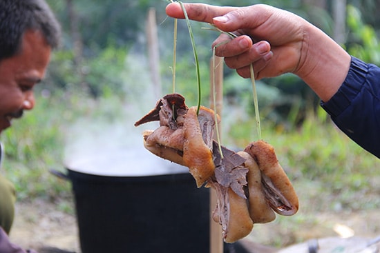 Khi phần lễ khép lại, không khí hội hè bắt đầu rộn ràng. Gia đình mở tiệc chung vui cùng bà con trong làng, nấu rượu cần, cơm lam và chế biến các món đặc sản núi rừng như chuột, sóc, ếch chò… để đãi khách, sẻ chia niềm hân hoan của những ngày đầu năm.