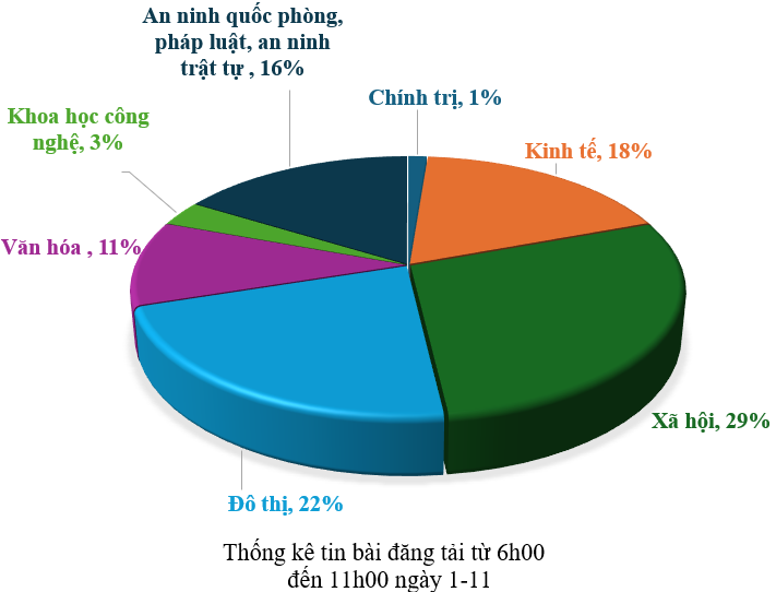 Từ 6h00 đến 11h00 ngày 1-11, có khoảng 160 tin, bài báo viết về thành phố Đà Nẵng.