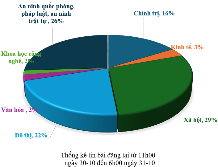 Từ 11h00 ngày 30-10 đến 6h00 ngày 31-10, có khoảng 547 tin, bài báo viết về thành phố Đà Nẵng.