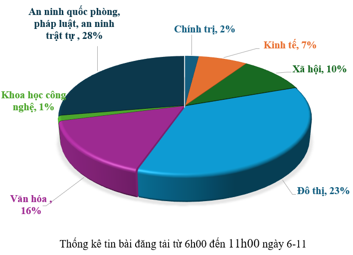 Từ 6h00 đến 11h00 ngày 6-11, có khoảng 148 tin, bài báo viết về thành phố Đà Nẵng.