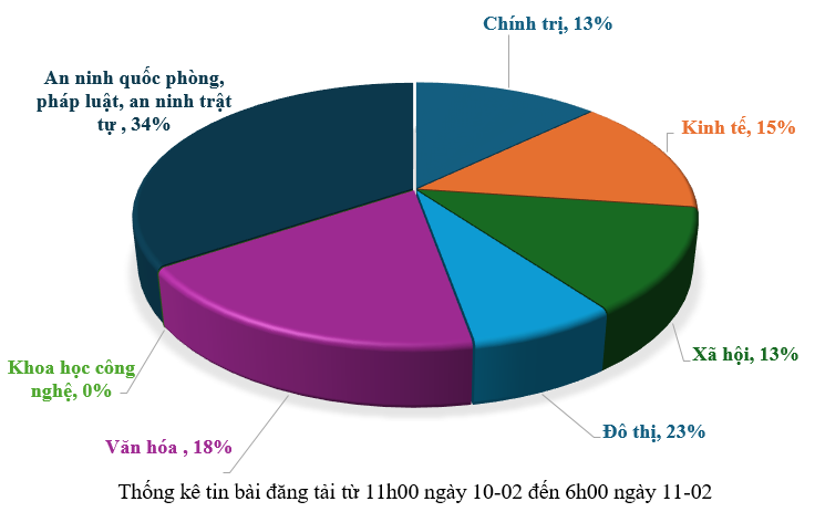 Từ 11h00 ngày 10-02 đến 6h00 ngày 11-02, có khoảng 125 tin, bài viết về thành phố Đà Nẵng.