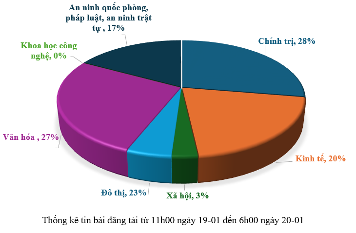 Từ 11h00 ngày 19-01 đến 6h00 ngày 20-01, có khoảng 141 tin, bài báo viết về thành phố Đà Nẵng.