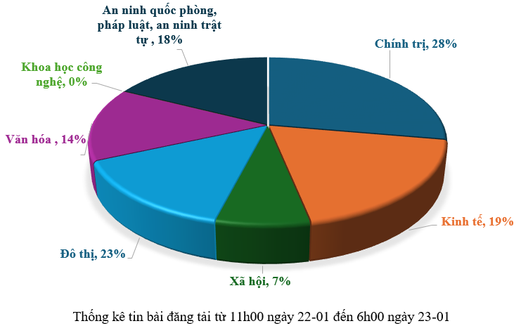Từ 11h00 ngày 22-01 đến 6h00 ngày 23-01, có khoảng 126 tin, bài báo viết về thành phố Đà Nẵng.