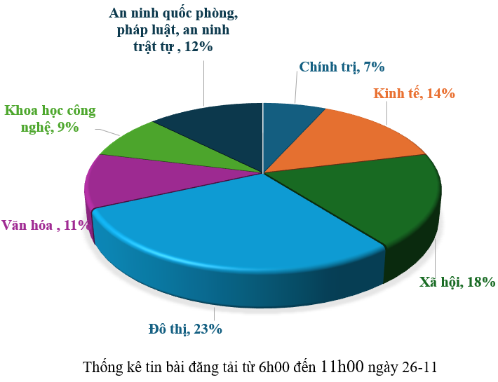 Từ 6h00 đến 11h00 ngày 26-11, có khoảng 104 tin, bài báo viết về thành phố Đà Nẵng.