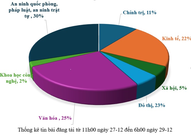 Từ 11h00 ngày 27-12 đến 6h00 ngày 29-12, có khoảng 216 tin, bài báo viết về thành phố Đà Nẵng.