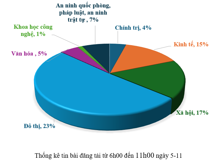 Từ 11h00 ngày 04-11 đến 6h00 ngày 05-11, có khoảng 312 tin, bài báo viết về thành phố Đà Nẵng.