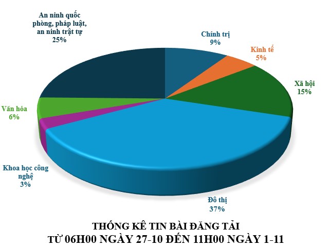Từ 06h00 ngày 27-10 đến 11h00 ngày 1-11, có khoảng 3.735 tin, bài báo viết về thành phố Đà Nẵng.