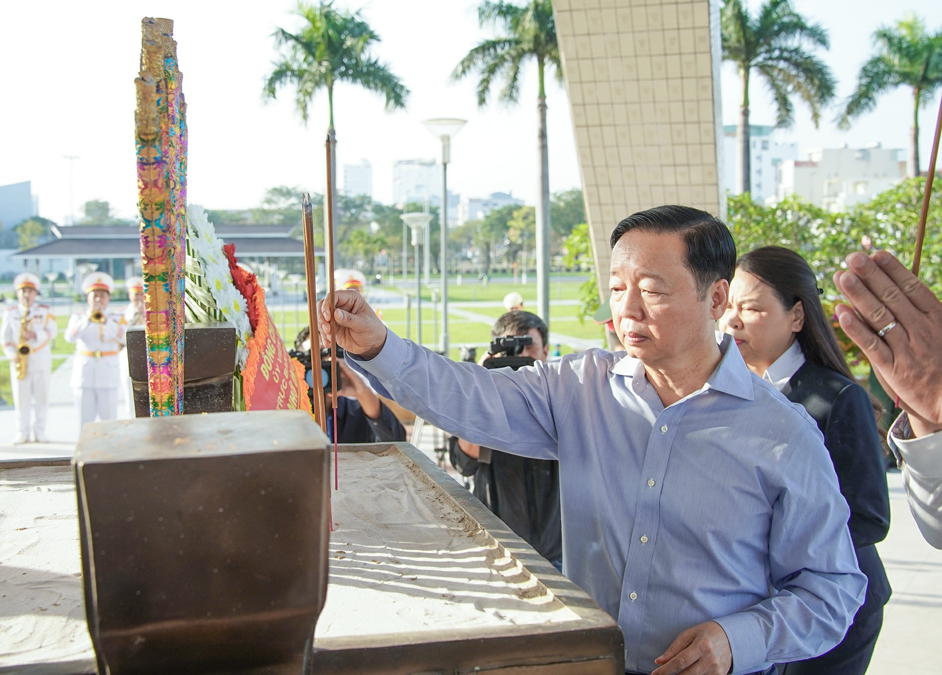 Thường trực Ban Bí thư Trần Cẩm Tú dâng hương tại Đài Tưởng niệm thành phố