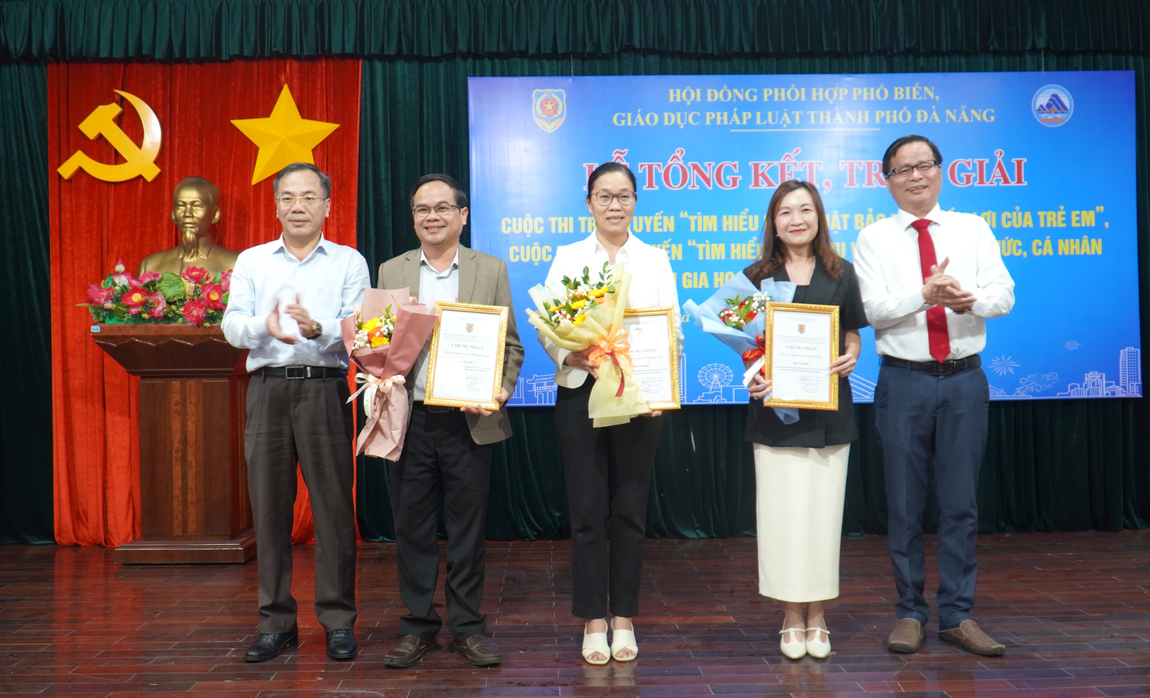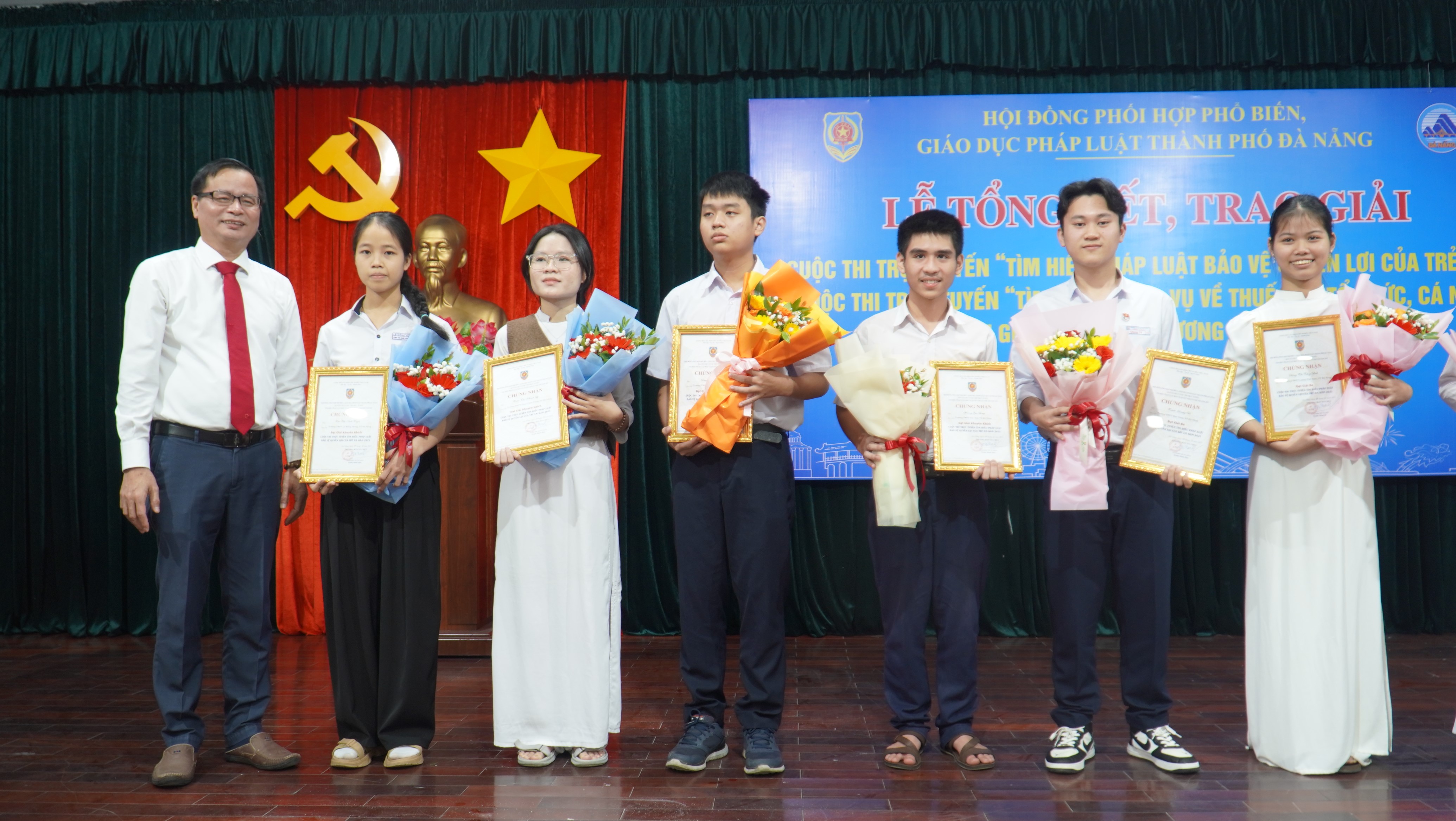 Ban Tổ chức đã trao giải cho 3 tập thể và 10 cá nhân đối với mỗi Cuộc thi. Trong đó, Cuộc thi “Tìm hiểu pháp luật bảo vệ quyền lợi của trẻ em năm 2025” trao giải Nhất cho tập thể Trường THPT Phan Chu Trinh, giải Nhì trao cho Trường THPT Nguyễn Duy Hiệu, giải Ba trao cho Trường THPT Lương Thế Vinh. Giải Nhất cá nhân được trao cho em Lê Quốc Việt, học sinh Trường THPT Lê Hồng Phong.