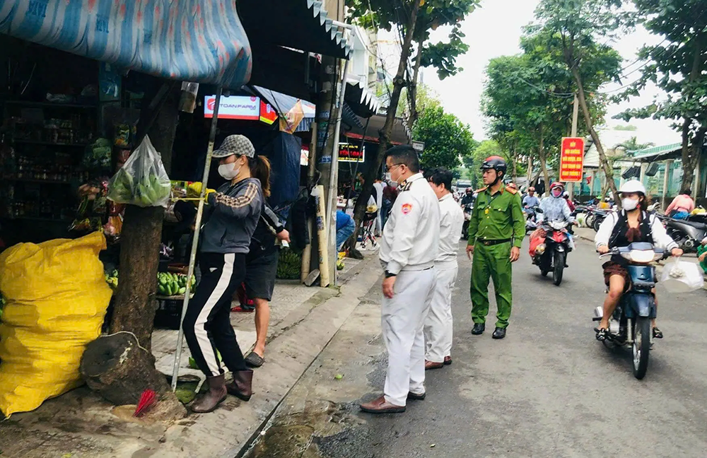 Tại phường Liên Chiểu, Công an phường phối hợp với Trung tâm cung ứng dịch vụ sự nghiệp công và lực lượng bảo vệ an ninh trật tự cơ sở tổ chức tuần tra, kiểm soát, tập trung xử lý các hành vi lấn chiếm vỉa hè, lòng đường để kinh doanh buôn bán, dừng đỗ phương tiện không đúng quy định gây cản trở giao thông.