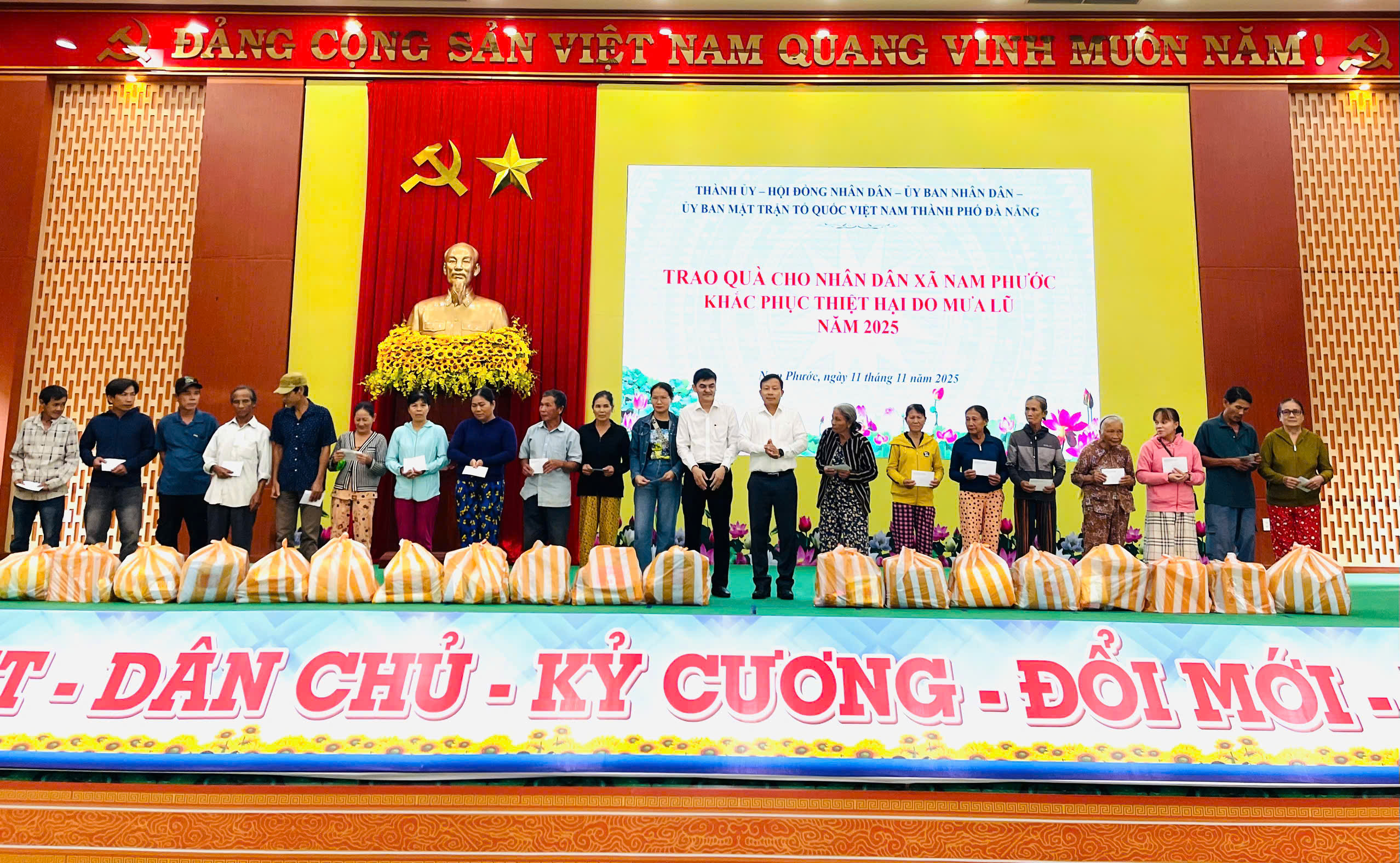 Dịp này, Trưởng ban Tổ chức Thành uỷ Đà Nẵng tặng 40 suất quà cho 40 hộ gia đình chịu thiệt hại nặng nề trong các đợt lũ lụt vừa qua. Ân cần thăm hỏi, chia sẻ với bà con trước những thiệt hại do thiên tai gây ra, động viên người dân sớm khắc phục khó khăn, ổn định cuộc sống.
