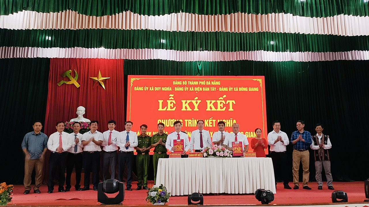 Ngày 11-10, tại xã Đông Giang, Đảng ủy các xã: Điện Bàn Tây, Duy Nghĩa và xã Đông Giang (thành phố Đà Nẵng) tổ chức lễ ký kết chương trình kết nghĩa nhằm hỗ trợ phát triển toàn diện giữa các địa phương.