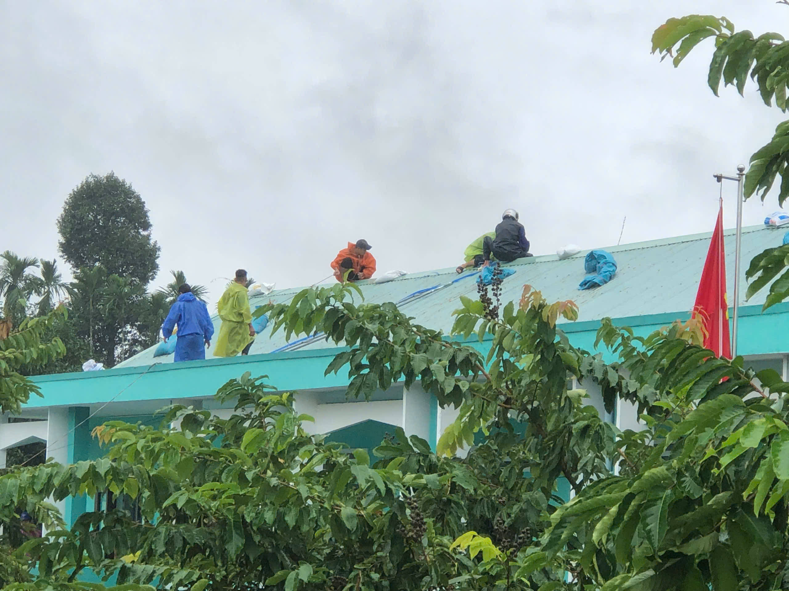 Lực lượng chức năng xã Nông Sơn tập trung chằng chống công sở và nhà dân