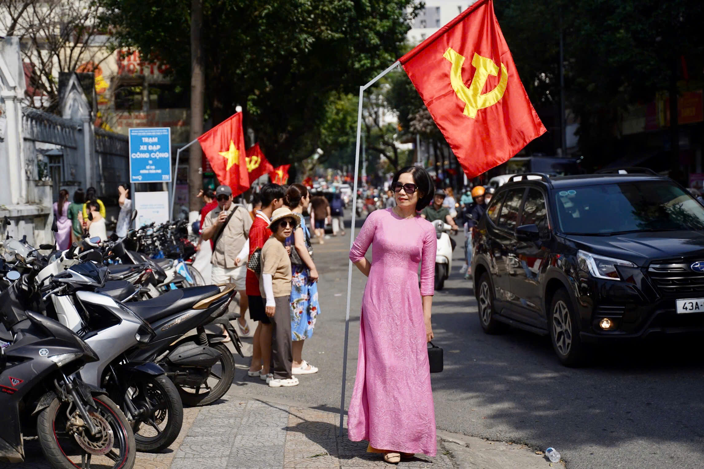 Những tà áo dài thướt tha tô điểm cho không khí mùa xuân rực rỡ khắp phố phường