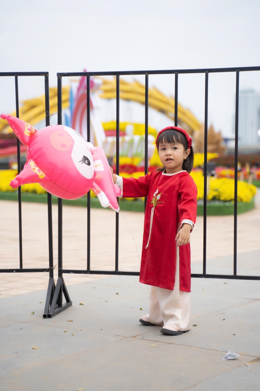 Không chỉ giới trẻ, nhiều gia đình cũng rủ nhau mặc áo dài dồng bộ để lưu giữ kỷ niệm. Tại đường hoa 2/9, hình ảnh các em nhỏ trong tà áo dài bé xinh chạy nhảy bên cha mẹ đã khiến nhiều người xúc động. Những tiếng cuời giòn tan hòa lẫn trong khung cảnh xuân ngập tràn, làm ấm lòng bất kỳ ai ngang qua