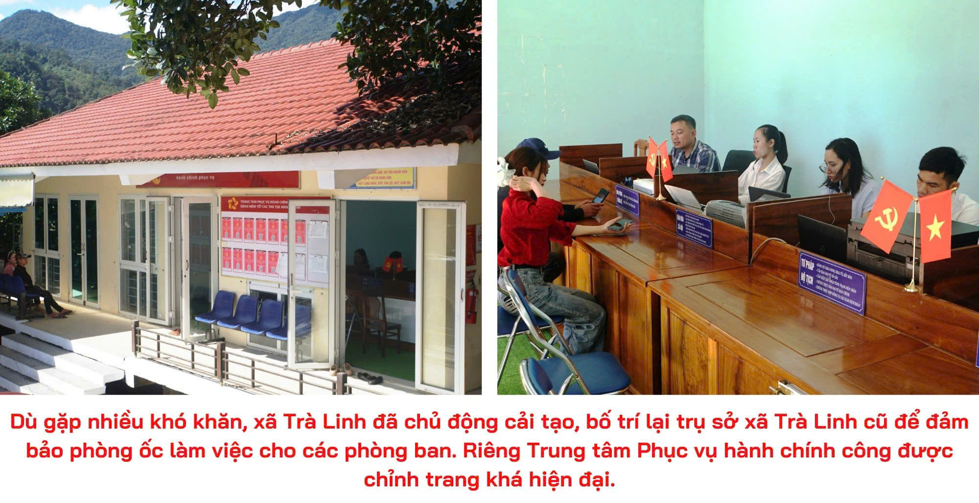 “Với tinh thần vừa chạy, vừa xếp hàng, cùng với quyết tâm chính trị, toàn thể cán bộ công chức xã Trà Linh đã cơ bản có chỗ làm việc, các trang thiết bị cũng được đáp ứng để giải quyết công việc thông suốt, đảm bảo phục vụ người dân và doanh nghiệp.Chúng tôi quyết tâm vượt qua mọi khó khăn ban đầu để chung sức xây dựng xã Trà Linh phát triển mạnh mẽ. Về lâu dài thì xã cũng mong muốn được đầu tư trụ sở rộng rãi, khang trang hơn để anh em yên tâm công tác”, ông Hải chia sẻ.