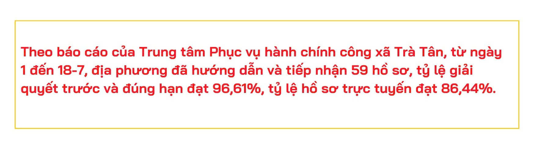 Ở xã Trà Tân, trước đây có mô hình “Ngày thứ 6 không chờ”. Người dân chỉ mất từ 20-30 phút để làm thủ tục,kết quả được trả luôn tại chỗ, không phải đi lại nhiều lần, không tốn thời gian chờ đợi, hạn chế phiền hà, sai sót thông tin trên các mẫu đơn, mẫu tờ khai….