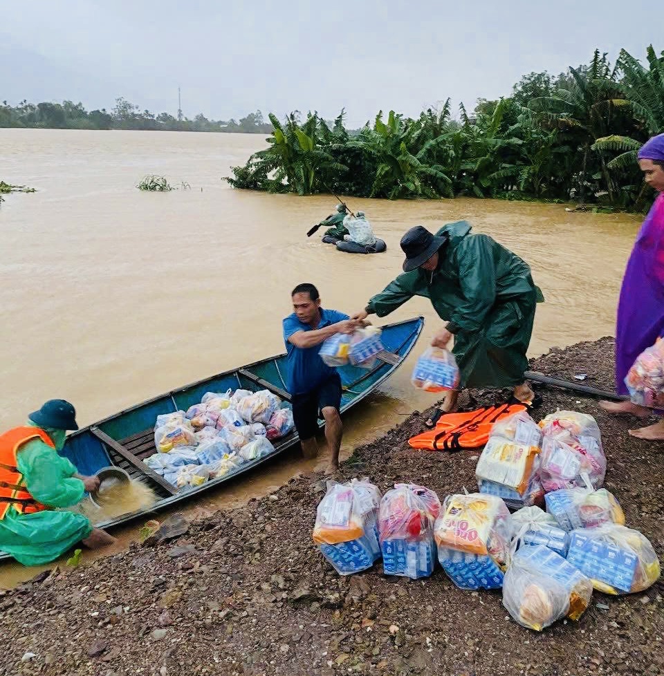 Tiếp ứng lương thực, nhu yếu phẩm cho đồng bào bị ngập lụt.